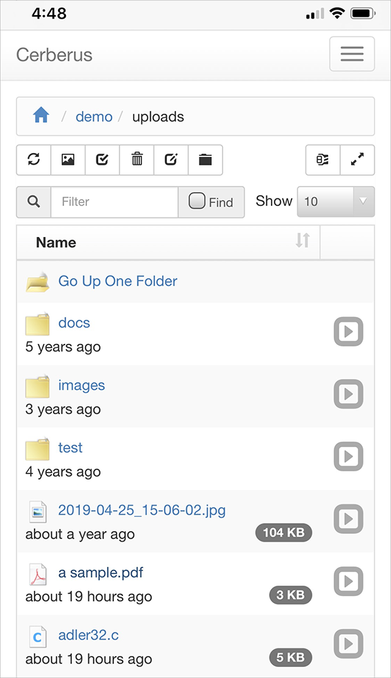 Available in Cerberus FTP Server Enterprise edition, the HTTP/S web client capability allows any user with access to a common web browser to easily connect to the server to perform file operations (uploading, downloading, deleting, renaming, creating directories, and zipping and unzipping files and directories) using a desktop or mobile web browser.